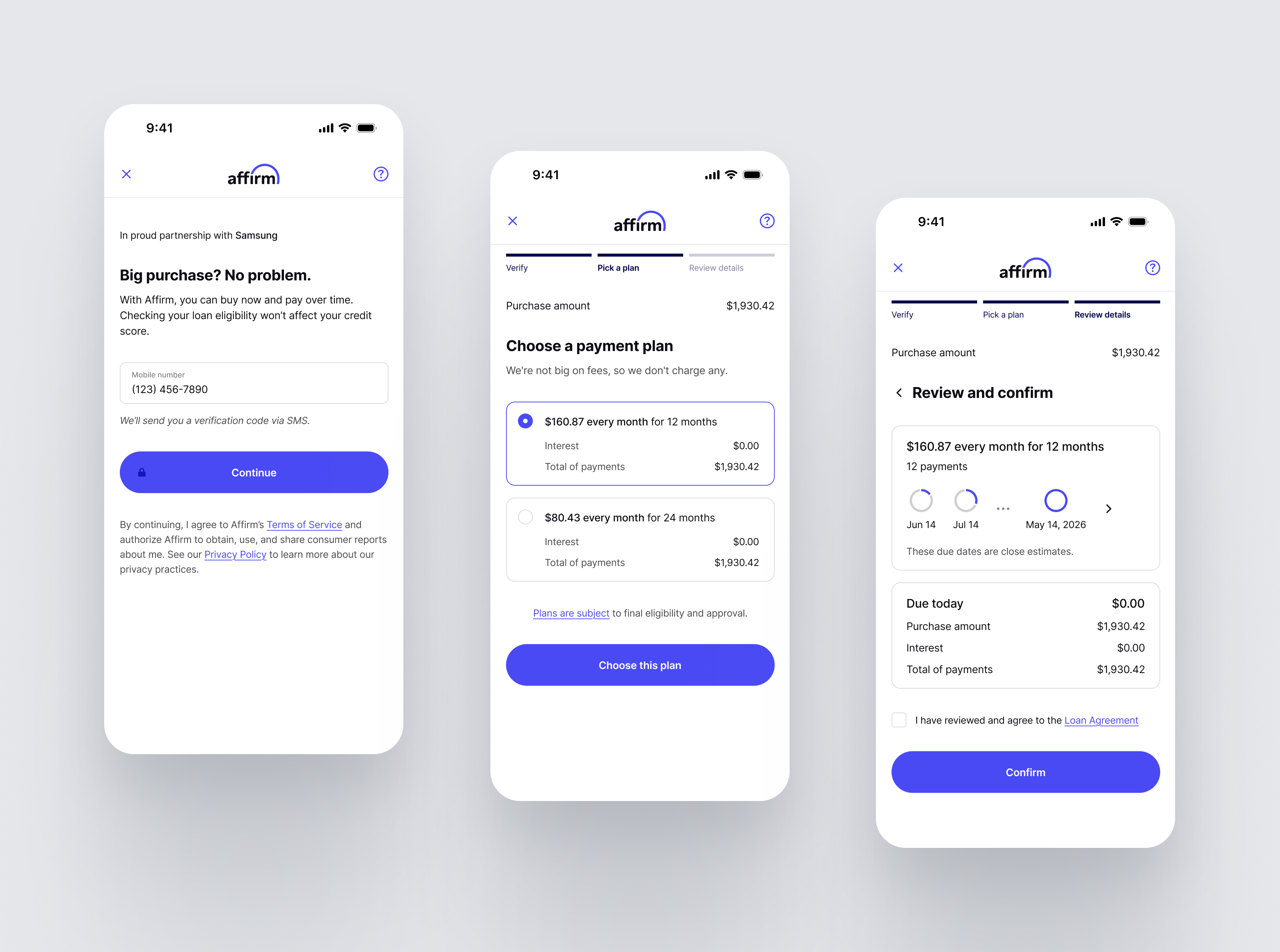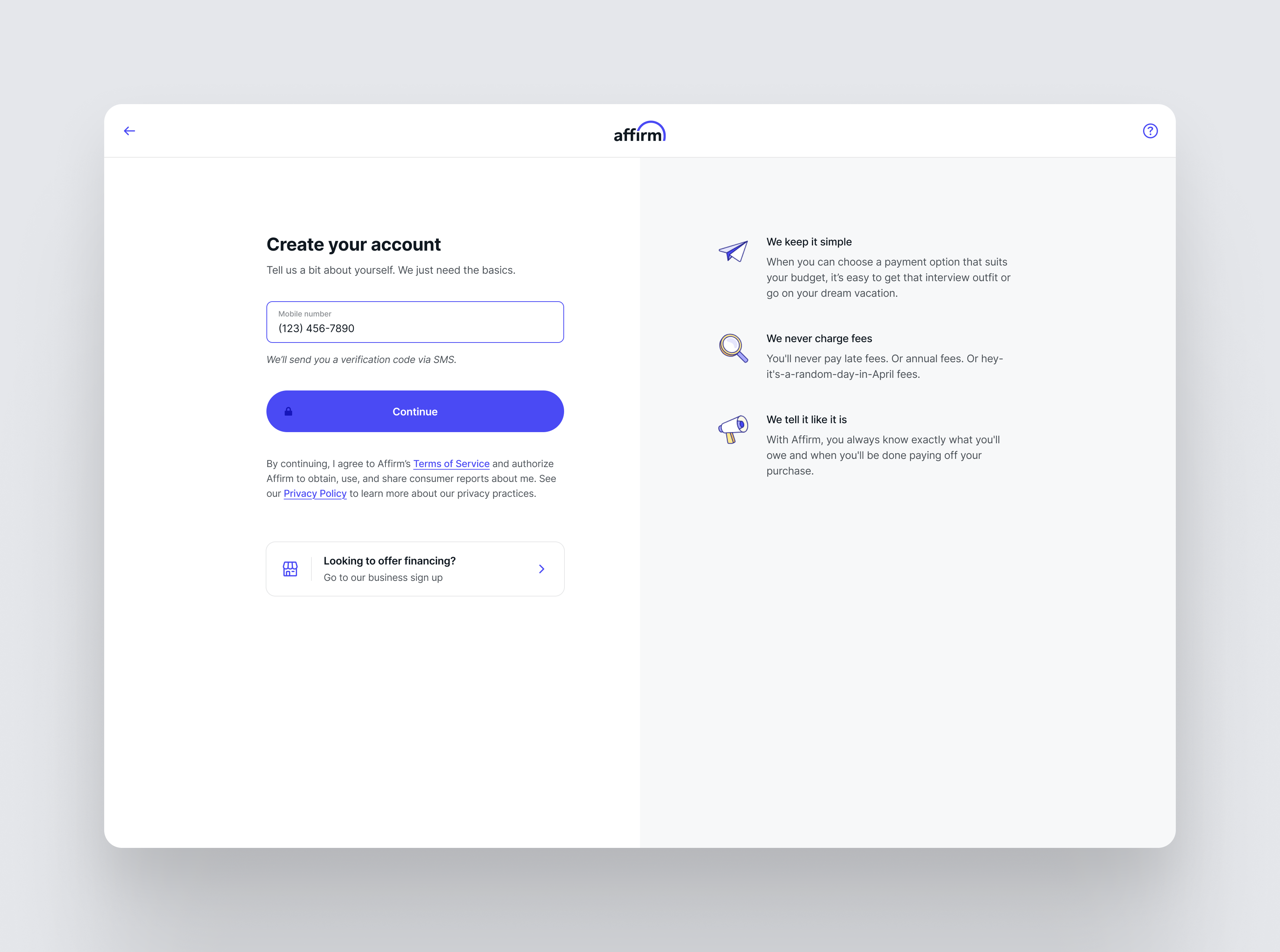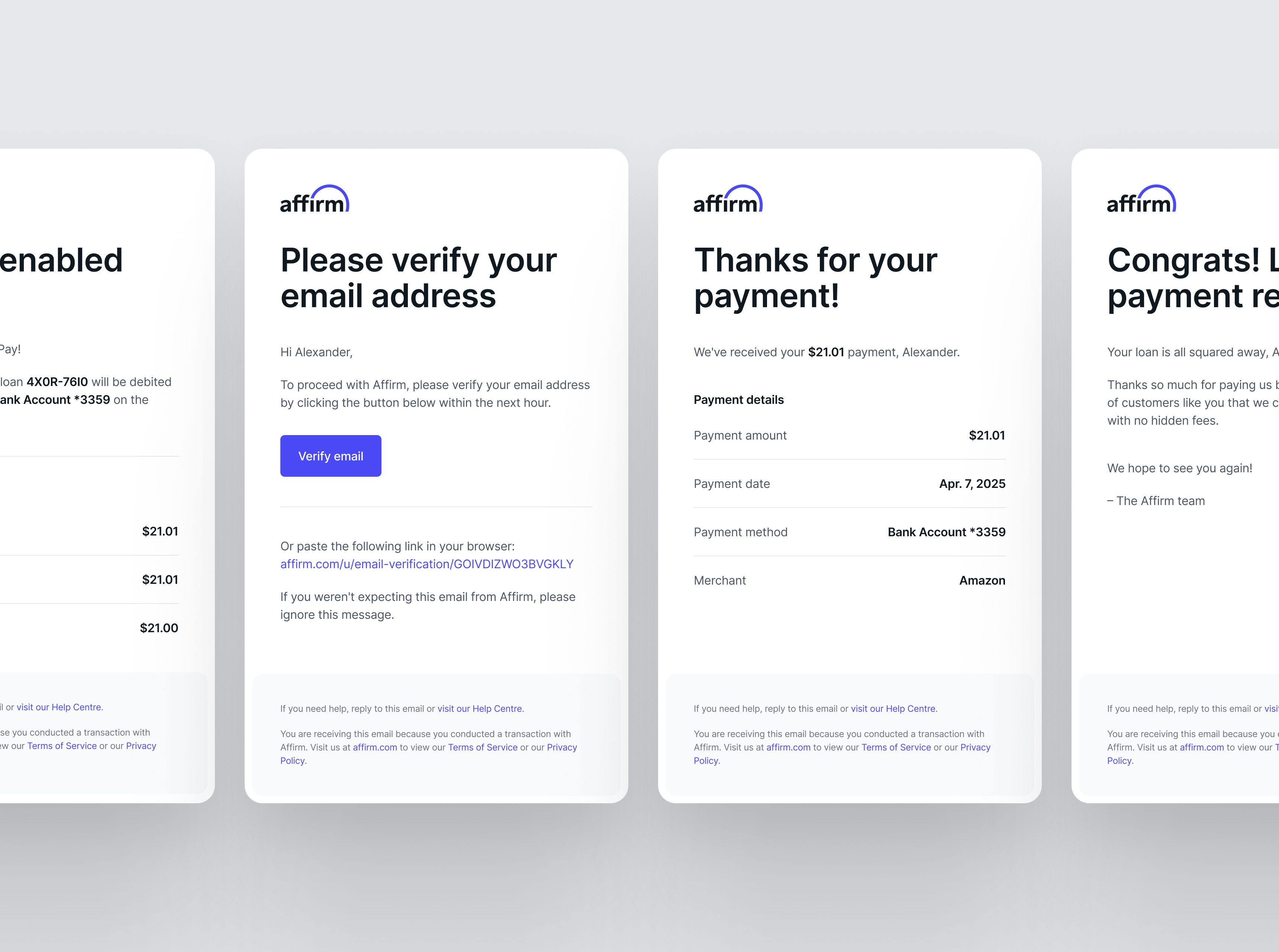 I joined Affirm in 2015 as the second design hire. My work spanned product design, web design, brand, and front-end development.