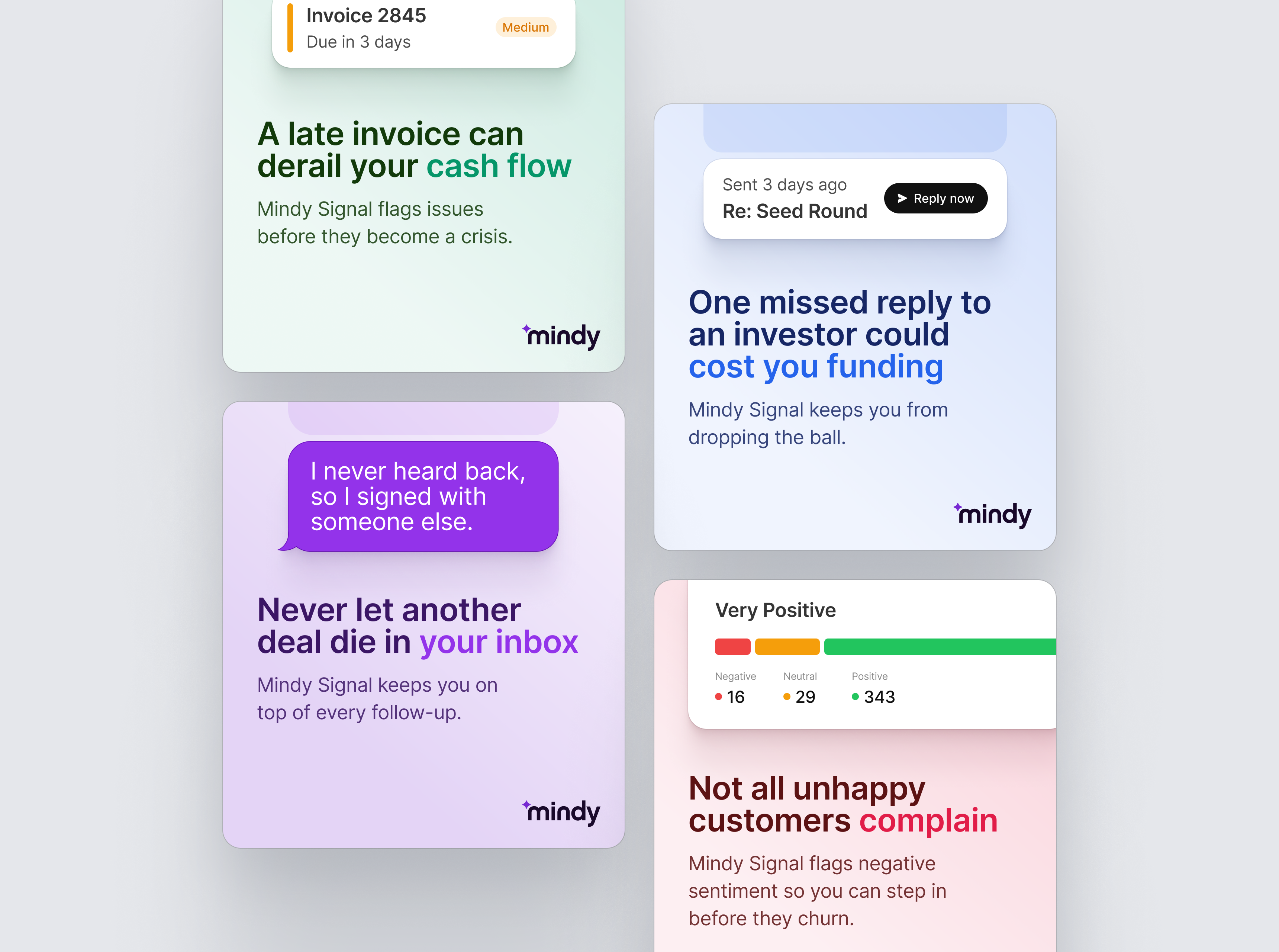 Mindy is a smart alerting product that flags real-time revenue risks and opportunities. I handled all design from top-to-bottom.