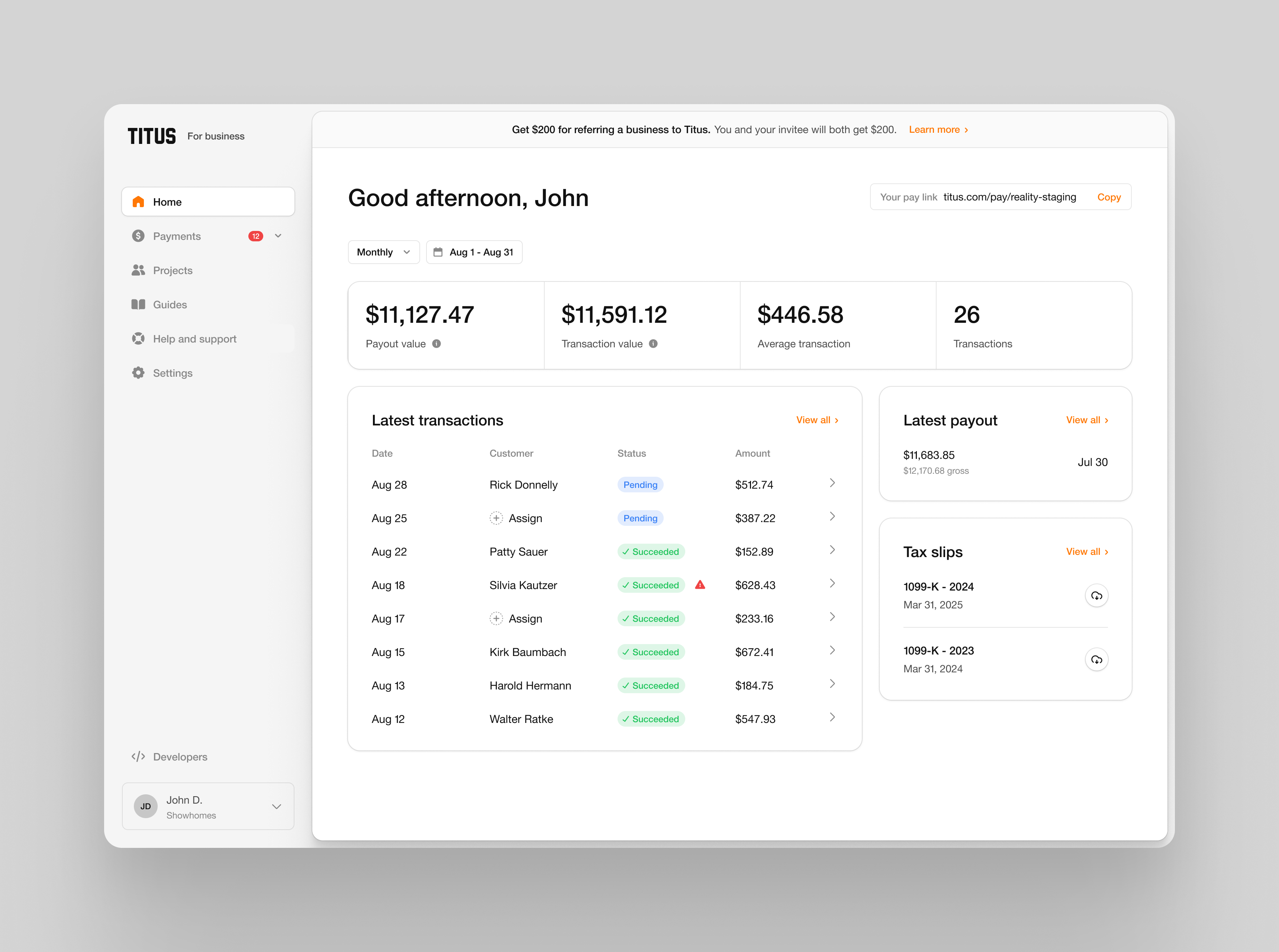 Titus is a platform offering a suite of financial tools for businesses, realtors, and homeowners. I handled all design from top-to-bottom.